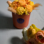 Νέες κομψές χειροποίητες κέρινες αρωματικές ανθοσυνθέσεις σε κεραμικό κασπώ. Η κάθε σύνθεση συνδυάζει αποξηραμένα και διακοσμητικά στοιχεία σε γήινες αποχρώσεις, με ιδιαίτερη πινελιά τις μικρές διακοσμητικές κολοκύθες που δίνουν φθινοπωρινό χαρακτήρα. Η γκρι σύνθεση περιλαμβάνει λουλούδια μαργαρίτας και απαλές μπεζ λεπτομέρειες, ενώ η καφέ έχει dusty pink τριαντάφυλλα, παχύφυλλα και λευκά στοιχεία που χαρίζουν κομψότητα.