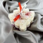 Αρωματικό κερί σε σχήμα bubble 8*8 βάρους 600gr από 100% φυτικό κερί ελαιοκράμβης σε χρώμα και άρωμα της επιλογής σας, διακοσμημένο με φύλλα χρυσού.