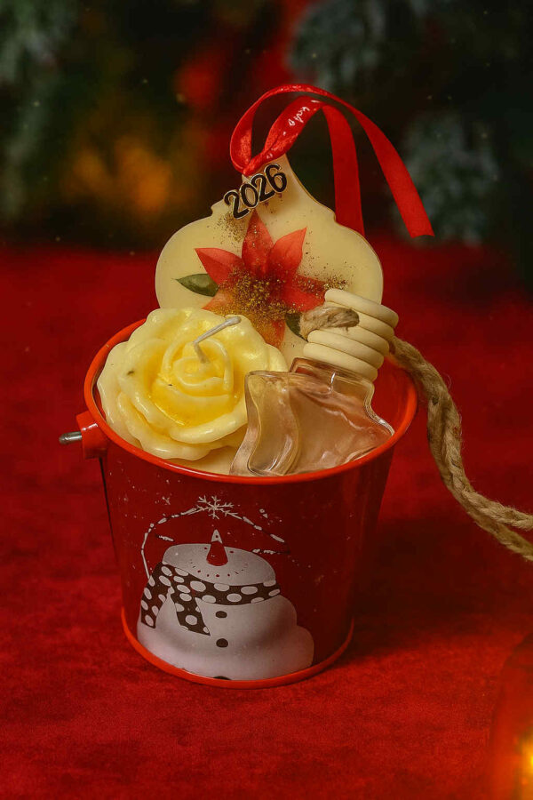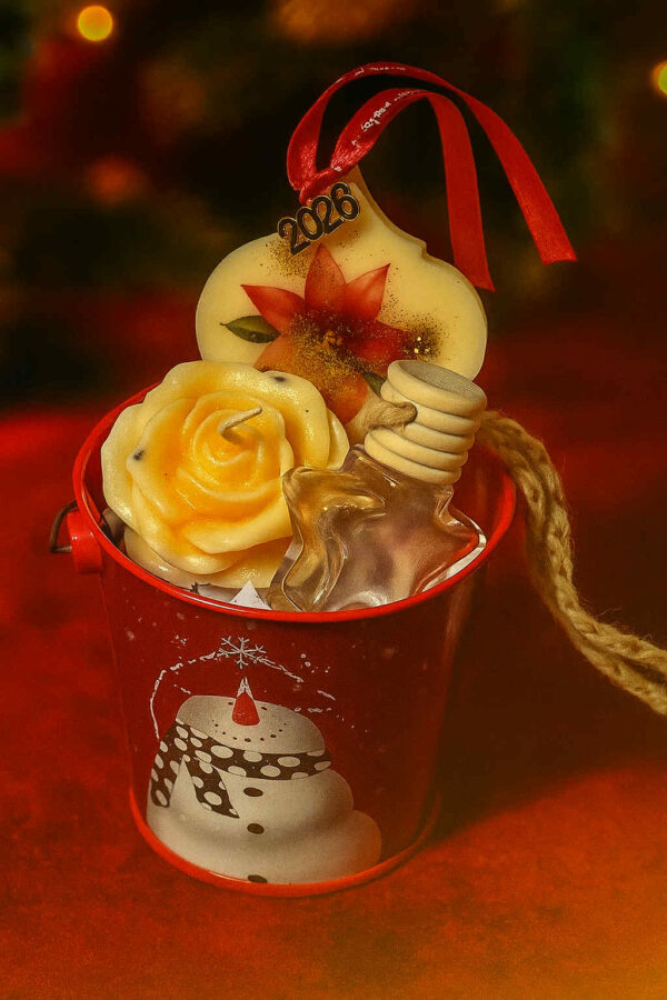 Χαρίστε ένα ξεχωριστό, χριστουγεννιάτικο δώρο με αυτό το υπέροχο σετ αρωματικών! Συσκευασμένο σε γιορτινό μεταλλικό κουβαδάκι με χειμωνιάτικο σχέδιο, το σετ συνδυάζει τρία μοναδικά, χειροποίητα προϊόντα που γεμίζουν τον χώρο και τις στιγμές σας με ζεστά, γιορτινά αρώματα.