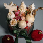 Η “Melomakarono Bliss” είναι μια πολυτελής, χειροποίητη κέρινη σύνθεση εμπνευσμένη από το πιο αγαπημένο άρωμα των γιορτών — το μελομακάρονο. Νότες μελιού, κανέλας και καρυδιού αναμειγνύονται για να γεμίσουν τον χώρο με γλυκιά θαλπωρή και χριστουγεννιάτικη μαγεία. Η σύνθεση περιλαμβάνει κεριά σε γιορτινά σχέδια (μπαλίτσα, δεντράκι, ανθάκι, gingerbread), διακοσμητικά άνθη, χρυσές λεπτομέρειες , φωτάκια led και είναι τοποθετημένη σε βαθύ μπορντό κουτί με σατέν κορδέλα. Ένα κομψό στολίδι που θα λατρέψουν όσοι αγαπούν την παράδοση, τη ζεστασιά και το άρωμα του σπιτιού τα Χριστούγεννα. Μπορεί να γίνει προσωποποιημένη βάζοντας γιορτινό στοιχείο plexiglass της επιλογής σου.