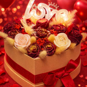 Heart love box- Κέρινη σύνθεση σε κουτί καρδιά με φωτάκι LED